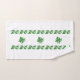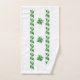 Holly se va en verde. Cintas de hojas/ramas enmarcan los grupos de ramas cruzadas en el centro. El paño de lavado muestra un solo racimo en círculo de hojas. La toalla de mano muestra tres grupos entre dos filas de hojas. La toalla de baño reproduce el diseño de la toalla de mano en la parte superior, inferior y central.