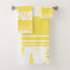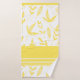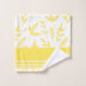 El conjunto de toallas es blanco y amarillo brillante, el diseño botánico se ve muy bonito en cualquier cuarto de baño.