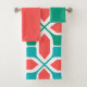 Este conjunto de toallas tiene un diseño art deco de hexagones, pentagones, cuadrados, líneas diagonales que parecen un mosaico.