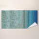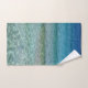 Este conjunto de toallas de baño azules de inspiración oceánica muestra las olas y el horizonte maravillosamente.