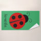 Ladybug Design Beach Toalla con color de fondo de personalizable y texto.
