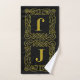 Un dragón con nudos celtas enmarca la letra "J" en este hermoso juego de toallas. El marco y la letra son de color dorado y están realzados por ordenador para un aspecto ligeramente grabado en relieve. Aunque puede cambiarlo para adaptarlo a su propia estética, el fondo seleccionado es un negro llamativo de medianoche. Una excelente elección para recién casados que ahora comparten la misma inicial.