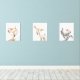 Añada los toques finales a la guardería de su bebé o a la habitación de su hijo con estas hermosas impresiones de arte. El diseño está formado por animales de bosque (zorro, ciervo, mapache), flores de acuarela rosa y vegetación.