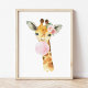 Añada los toques finales a la guardería de su bebé o a la habitación de su hijo con estas hermosas impresiones de arte. El diseño se compone de animales de la selva (león, jirafa, cebra), chicle rosa, flores de color agua rosa y vegetación.
