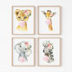 Añada los toques finales a la guardería de su bebé o a la habitación de su hijo con estas hermosas impresiones de arte. El diseño se compone de animales de la selva (león, jirafa, elefante, cebra), chicle rosa, flores de color rosa de las acuarelas y vegetación.