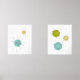 Añada ese toque de diversión a sus paredes con este conjunto de copias coordinadas modernas de mediados de siglo. El primer diseño presenta estallidos franciscanos azules y amarillos y el segundo presenta elementos atómicos azul, amarillo y verde aguacate.
