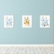 Añada los toques finales a la guardería de su bebé o a la habitación de su hijo con estas hermosas impresiones de arte. El diseño cuenta con flores de caballo, de color azul y de vegetación.