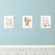 Añada los toques finales a la guardería de su bebé o a la habitación de su hijo con estas hermosas impresiones de arte. El diseño está decorado con guepardos, flores de acuarela rosa y vegetación.