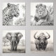Sets De Impresiones Dibujo de lápiz de animales africanos