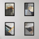 Conjunto de 4 formas geométricas abstractas de mediados de siglo dibujando arte de pared. Sugester marco de borde negro que puede cambiar fácilmente cambiando el color de fondo.
