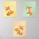 Un conjunto de 3 ilustraciones de zorros personalizados lindos con orejas grandes y colas espesas.