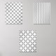 Un conjunto de magníficos diseños abstractos geométricos de gris claro. Este paquete de impresión consta de puntos de polka, tiras de chevron y un diseño de enrejado marroquí