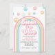 Seven es una invitación de cumpleaños número 7 inspirada en el arcoíris retro con fuentes y colores al estilo de los 70.