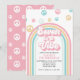 Seven es una invitación de cumpleaños número 7 inspirada en la lluvia de colores retro con fuentes y colores al estilo de los 70.