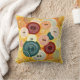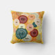 un collage de botones empapados con colores y un efecto dimensional hace que esta sea una almohada divertida para cualquier sala de coser, salón o en cualquier parte de tu casa para iluminar un rincón.