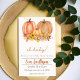 Celebra tu pequeña con esta invitación de este otoño de género neutro boho follage de calabaza género revelar invitación! Un lecho de hojas de otoño y flores bajo un trío de calabazas naranjas crea un estilo rústico y sofisticado que es perfecto para tu revelación de género. El esquema de color neutro de naranja, beige y blanco ayuda a hacer de esto una invitación ideal para fiestas y revelaciones de sexo neutro. La combinación de texto cursivo y tradicional une el aspecto de un estilo único y vintage.
