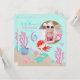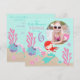 La sexta tarjeta de la invitación del cumpleaños de la pequeña sirena dulce con las criaturas subacuáticas y una foto insertan la plantilla.