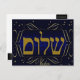 ¡Shalom! Saludos para todos los propósitos. Enviar una tarjeta con impacto gráfico. Perfecto como tarjeta de felicitación, tarjeta Hanukkah o para una invitación de fiesta de vacaciones. Añade tus propios mensajes personalizados en la parte posterior o haz una gran invitación para una fiesta. Completa un conjunto coordinado y elegante: En nuestra tienda zazzle.com/celebrationsevents* ver los sellos de correo, invitaciones, Invitaciones, tarjetas de felicitación y más!