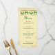 Elegante menú de bodas con rocas de champú y borde de herradura dorada para el símbolo irlandés de la suerte. Suave fondo de color crema dorada con sutiles motivos florales. Personalizar el con la información del menú. Un tema maravilloso para una primavera o un Boda irlandés. Tema de coincidencia disponible en otros productos de mi tienda.
