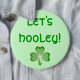 Un diseño moderno con un brillante, brillante y verde champán sobre un fondo verde y "Let's Hooley" escrito en verde. Botón con un diseño de personalizable para que puedas personalizar con tu propio texto, imágenes e ideas. Creado con fotografías originales y técnicas digitales de Jess Perry.
