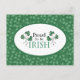 Una postal patriótica, con hojas verdes de Shamrock y "Orgulloso de ser irlandés" en guiones celtas, con un íntimo borde de patrón de shamrock. Parte de la colección "Shamrock" de Posh & Painterly.
