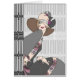 Asientan a Shelby delante y al lado de un sistema hermoso de cercas de la industria siderúrgica del art déco. Ella lleva un gorra simple, tirado hacia abajo sobre un ojo, y un vestido y una chaqueta coloridos con joyería a juego.