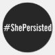 #ShePersistent, texto blanco sobre pegatinas negro