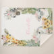 Manta de safari para bebé con adorables animales de safari y flores rosadas en un fondo de color a elección. Esta manta de safari para bebé se puede personalizar con el texto que desees.