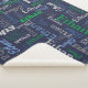 Nombre corto tipográfico texto azul, verde, gris y blanco sobre un diseño de manta de personalizado de fondo azul oscuro. El color de fondo se puede cambiar si es necesario. Divertido texto gráfico personalizado manta personalizada. Ideal para el coche, acampando para las noches de invierno o excursiones. Personaliza tu propio nombre corto, actualmente lee Ethan para obtener ayuda con la personalización y otras longitudes de nombres por favor contáctame. © Arte y diseño de Sarah Trett para www.mylittleeden.com
