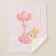 Una manta con un ilustracion adorable. Un pequeño conejito de bebés con una pequeña corona dorada. Llevado por globos en una manta rosa de corazón.