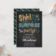 Edite el texto para personalizar esta divertida invitación azul sorpresa de cumpleaños. Presenta tipografía audaz y acentos bonitos.
