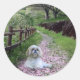 Shih Tzu Pegatina Flores Púrpura