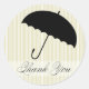 ¡Ideal para las duchas de bebés o de novias! Gracias en un fondo de rayas verdes con paraguas negros.