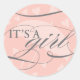 ¡Usa estos adorables pegatinas cuando envíes invitaciones o gracias por tu próxima ducha de bebé! Una lluvia de corazones caen sobre un dulce paraguas, con el texto "es un chica".