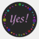 ¡Sí! Con estos pegatinas divertidos. La palabra Sí, está escrita en lavanda, en el centro de coloridas estrellas retro, en negro, pegatinas. El color de fondo negro se puede personalizar a un color diferente de la selección. Gracias por comprar en CherylsArt en Zazzle.
