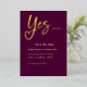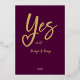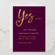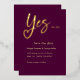¡Sí, lo hacemos! tarjeta de anuncio de boda con foil de ciruela y oro real