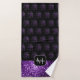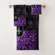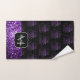 Personalice su nombre inicial y original, con una única toalla de baño falsa y brillante para ella. Si es Sparkly y Purple quiero un patrón. Un hermoso purpurina morado rompe el texto. Purpurinas brillantes de color morado glamuroso brillan sobre negro. ¡Foto de chispas moradas, no purpurina real!
