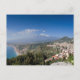 Sicilia - Taormina delante de la postal del Etna