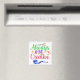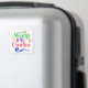 Este botón "Siempre ser creativo" tiene letras de colores en verde, púrpura y rosa, tijeras, hilo, una pistola de pegamento y cinta adhesiva.