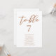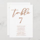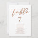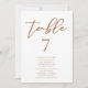 Esta tarjeta de número de mesa de siena marrón boda con números es un color regal cálido para una novia o novio que busca una mezcla entre suave y masculino. La escritura minimalista personalizado tan presenta una tipografía cursiva simple junto con un tipo de letra serif moderno y moda. Este suave marrón es perfecto para un evento de otoño por la tarde.
