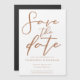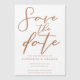 Este guión marrón de siena Guardar la invitación magnética de la fecha es un color regal cálido para una novia o novio que busca una mezcla entre suave y masculino. La encantadora tipografía minimalista tostado presenta un texto cursivo simple encima de una fuente serif moderna y moda. Este imán flexible invita a trabajar tanto para bodas de tarde como de noche.