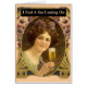 Imagen vintage de una mujer con una cerveza que dice que siento un pecado.