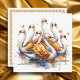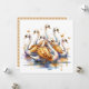 Tarjeta personalizada con tema Los doce días de Navidad. Ilustración de acuarela de Siete cisnes nadando.