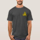 Camiseta de humor de ciencia sutil con un signo de advertencia triangular amarillo y negro con el símbolo gráfico para "explosivo".