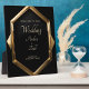 La imagen presenta un precioso guión dorado y un marco hexagonal en un estilo de arte moderno y elegante con un acabado dorado de lujo. La audaz geometría del hexágono se acentúa con líneas nítidas y limpias y una capa metálica casi espejo, lo que le da un toque sofisticado y contemporáneo. El interior del marco es de un negro profundo, creando un sorprendente contraste que enfatiza la riqueza del oro. Este diseño sería adecuado para una presentación elegante, añadiendo un toque de opulencia y belleza minimalista a la presentación general. Personalice el texto relativo a los nombres y detalles del boda.