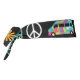 Banda de corbata hippie con divertido patrón de autobús de camper retro de carteles de paz y flores de bonito en colores hippy neón fresco.