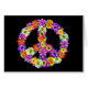 Un símbolo de paz floral en tonos rosa, amarillo, naranja, violeta, verde, blanco y negro.