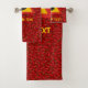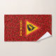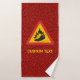 Signo de advertencia triangular con una silueta de pimienta y llama sobre un fondo sin costuras rojas. Texto personalizado.
