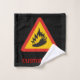 Signo de advertencia de triángulo con una silueta de pimienta y llama. Texto personalizado.
