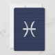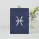 Un signo del zodiaco Piscis cromado en un fondo de textura de diseño de estilo de fibra de carbono azul marino. Un diseño moderno y urbano para una excelente idea de regalo de cumpleaños personalizado.